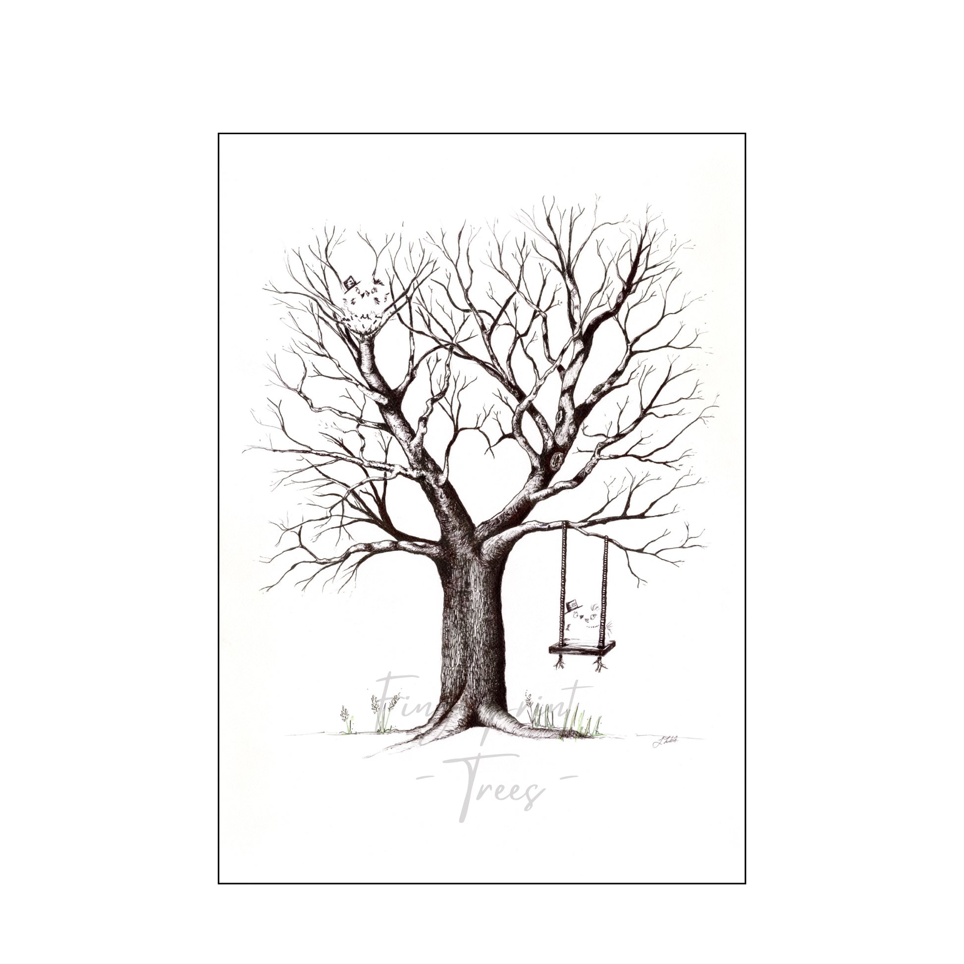 Hand-sketched fingerprint trees are a one-of-a-kind keepsake that will be treasured for years to come. Sketched in Japanese black and white ink on an A2 page. The result is a beautiful work of art that captures the essence of the occasion.